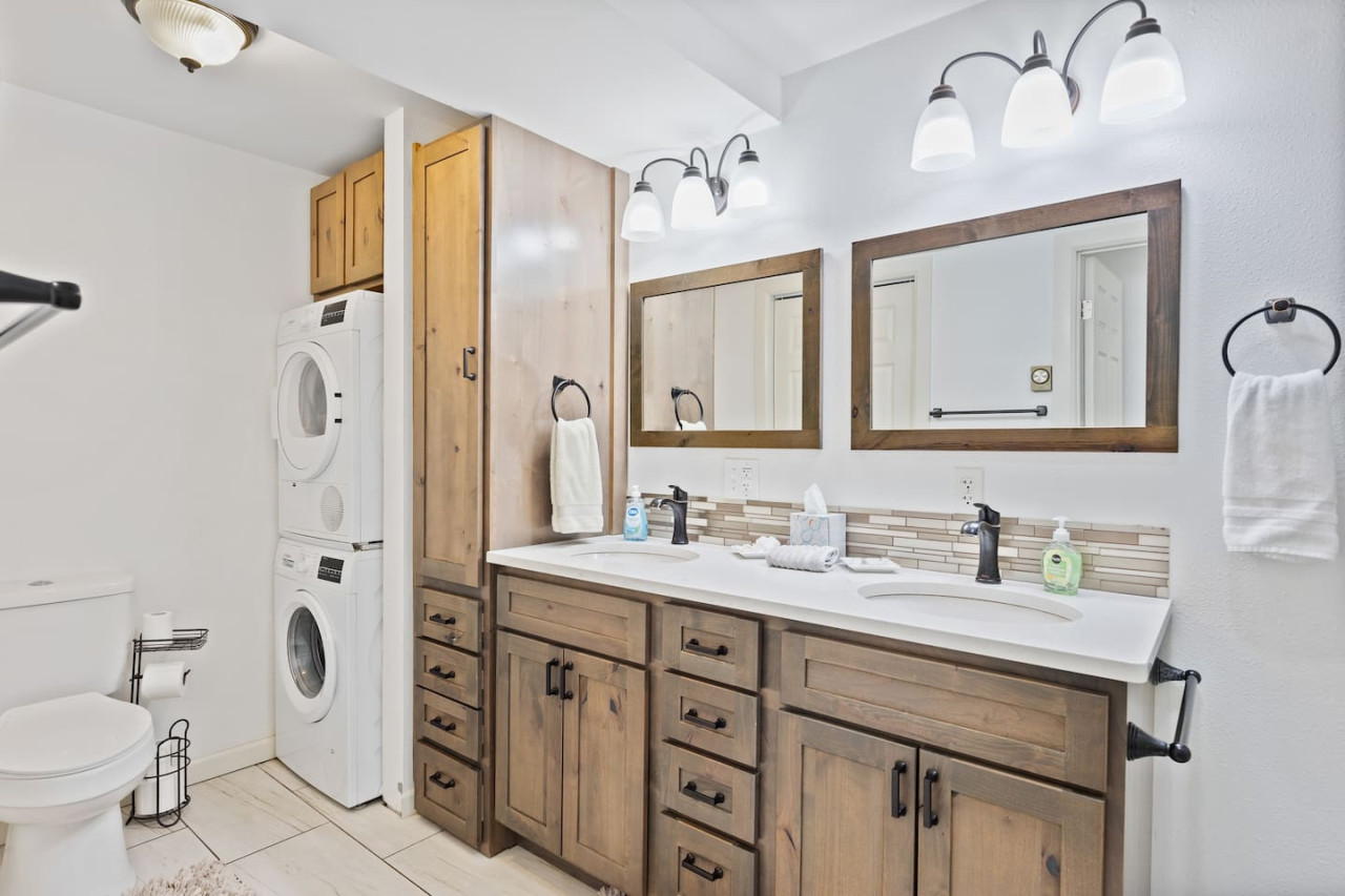GENERAL: Linens/towels, complimentary toiletries, laundry machines, hair dryer, keyless entry, trash bags, paper towels