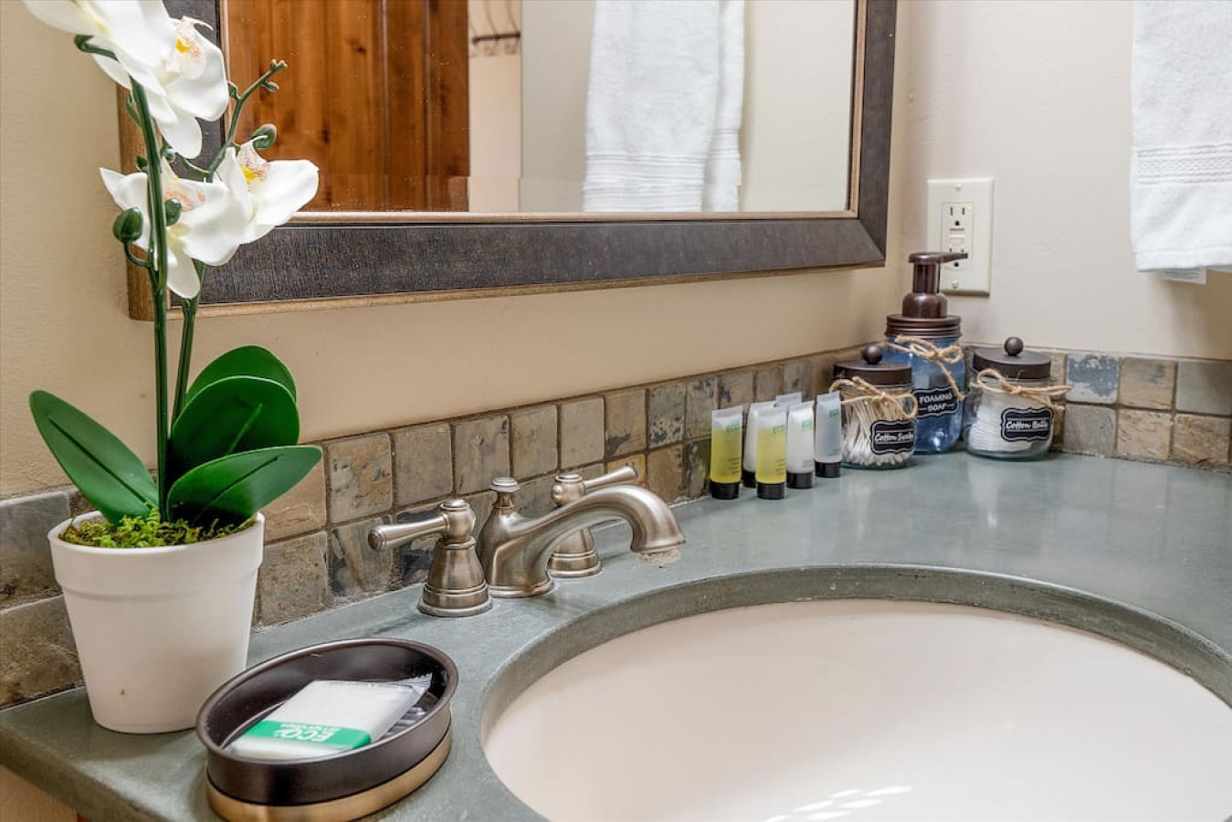 Step outside to the upper balcony and embrace the fresh mountain air. Breathtaking views of nature surround you, providing a tranquil backdrop. Savor a morning coffee or unwind with a glass of wine as the sun sets over the mountains.