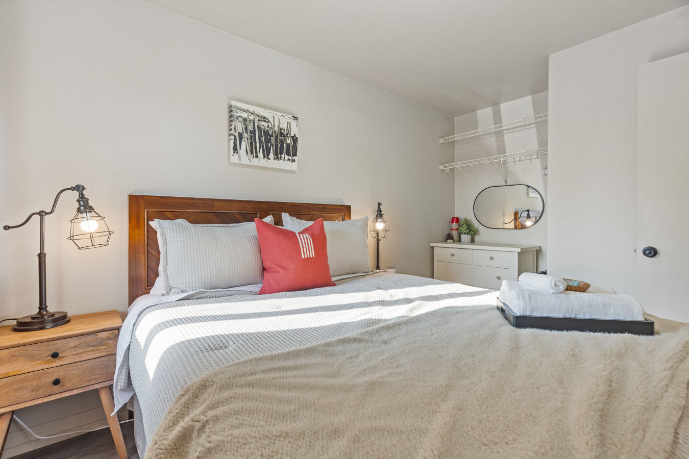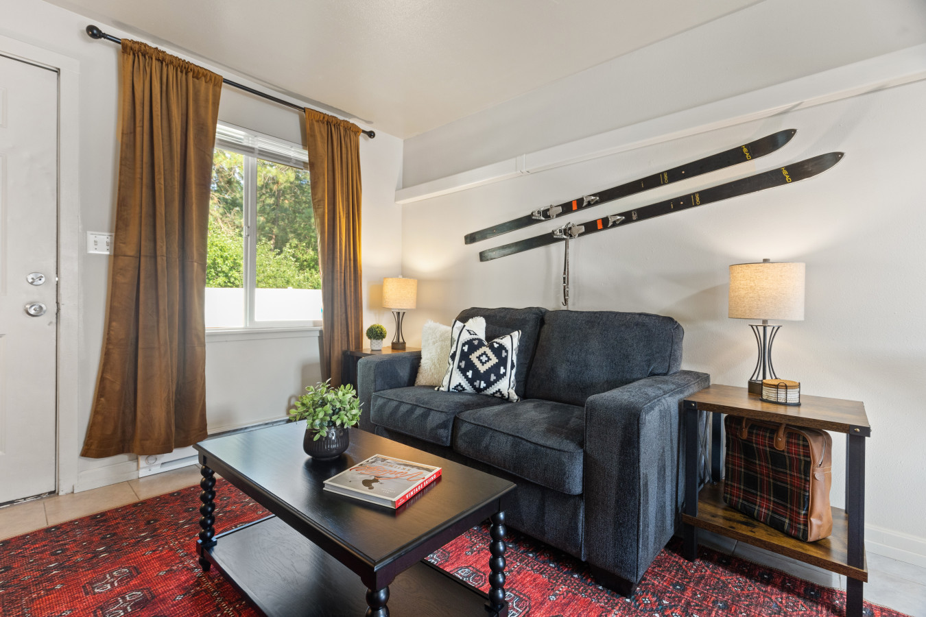 Current photos are from different unit, but the space will be decorated similarly and new photos will be posted soon!