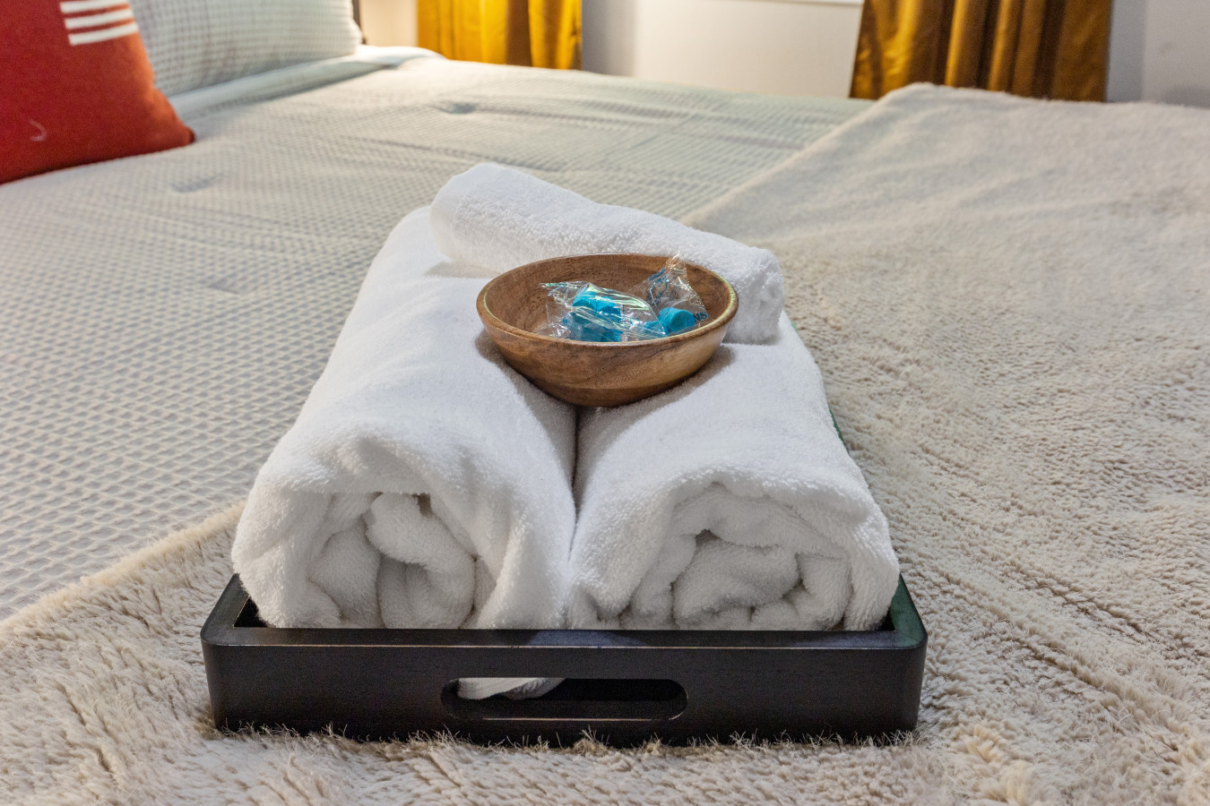 GENERAL: Linens/towels, complimentary toiletries, paid laundry machines, first aid kit, hair dryer, keyless entry, trash bags, paper towels