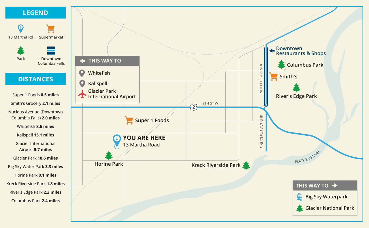 Neighborhood is within 5 minutes to downtown Columbia Falls and several local restaurants, bars, and breweries.