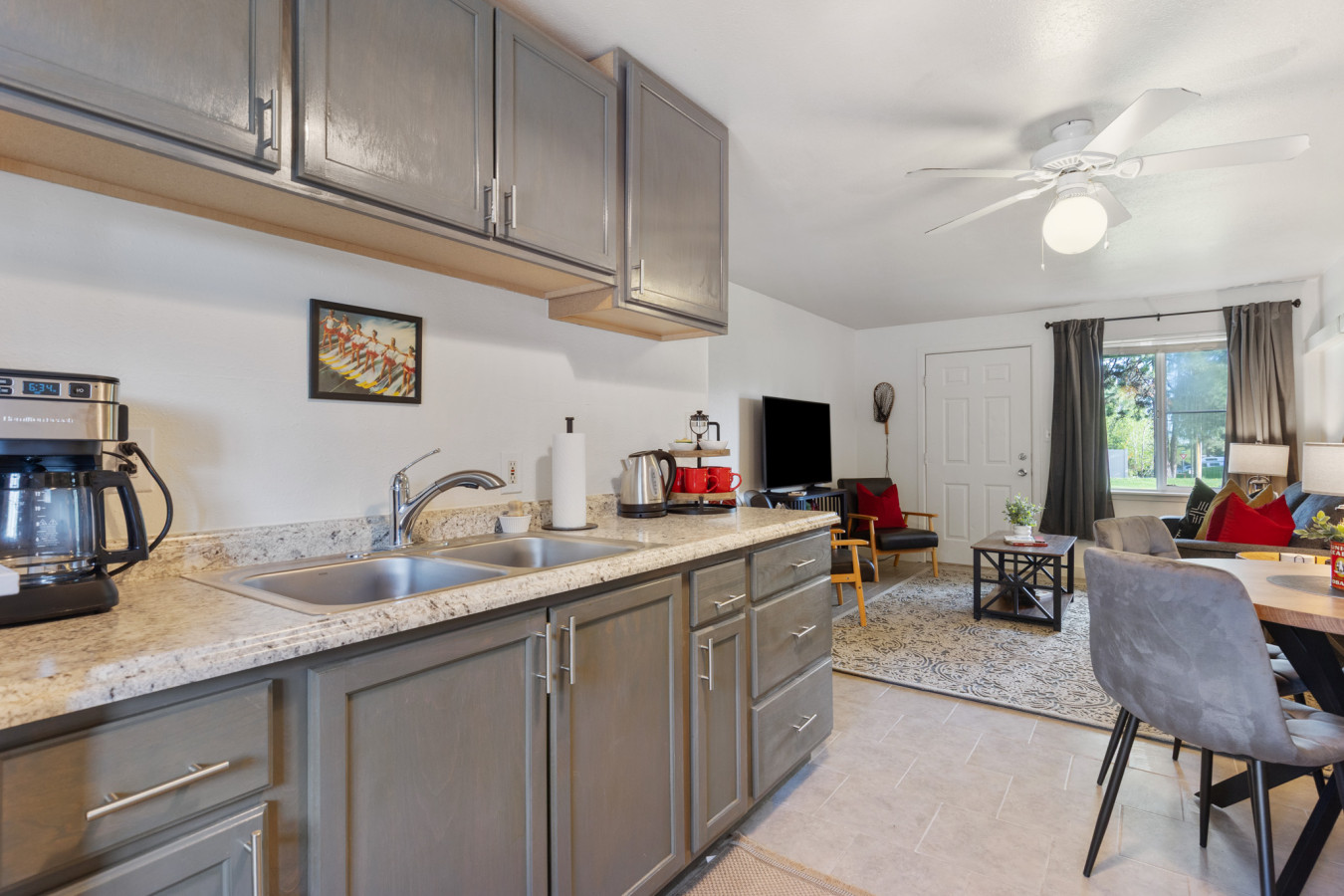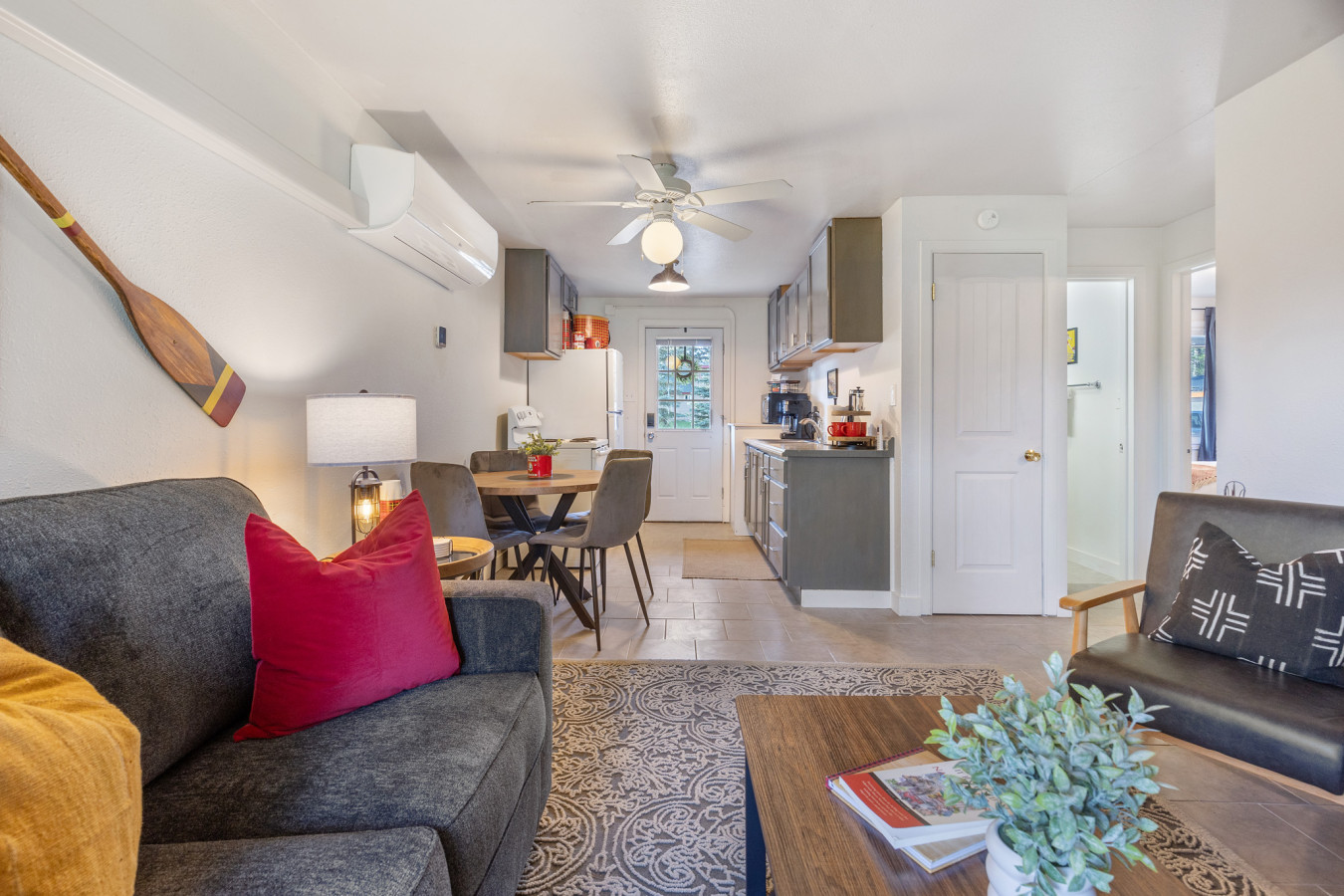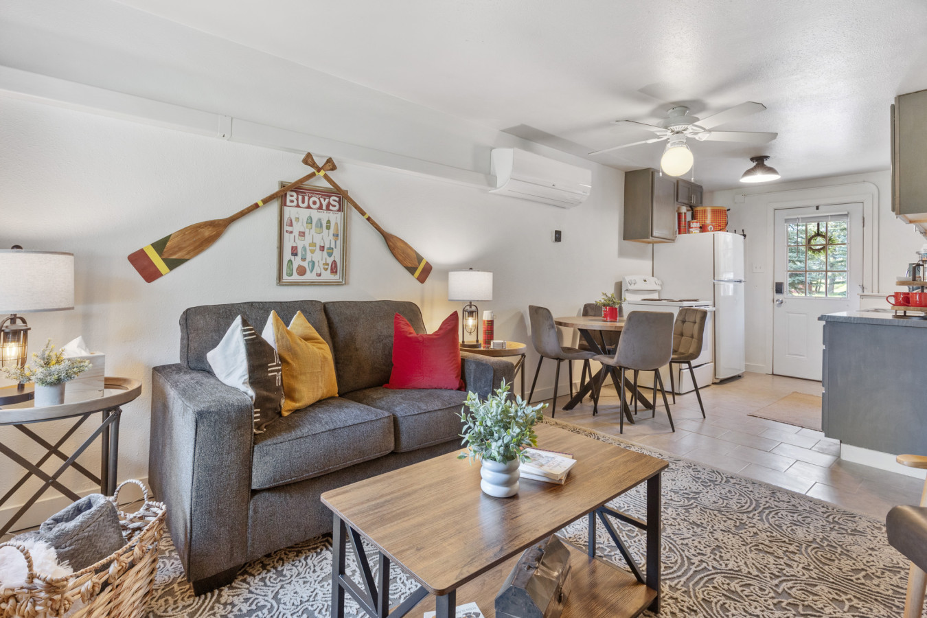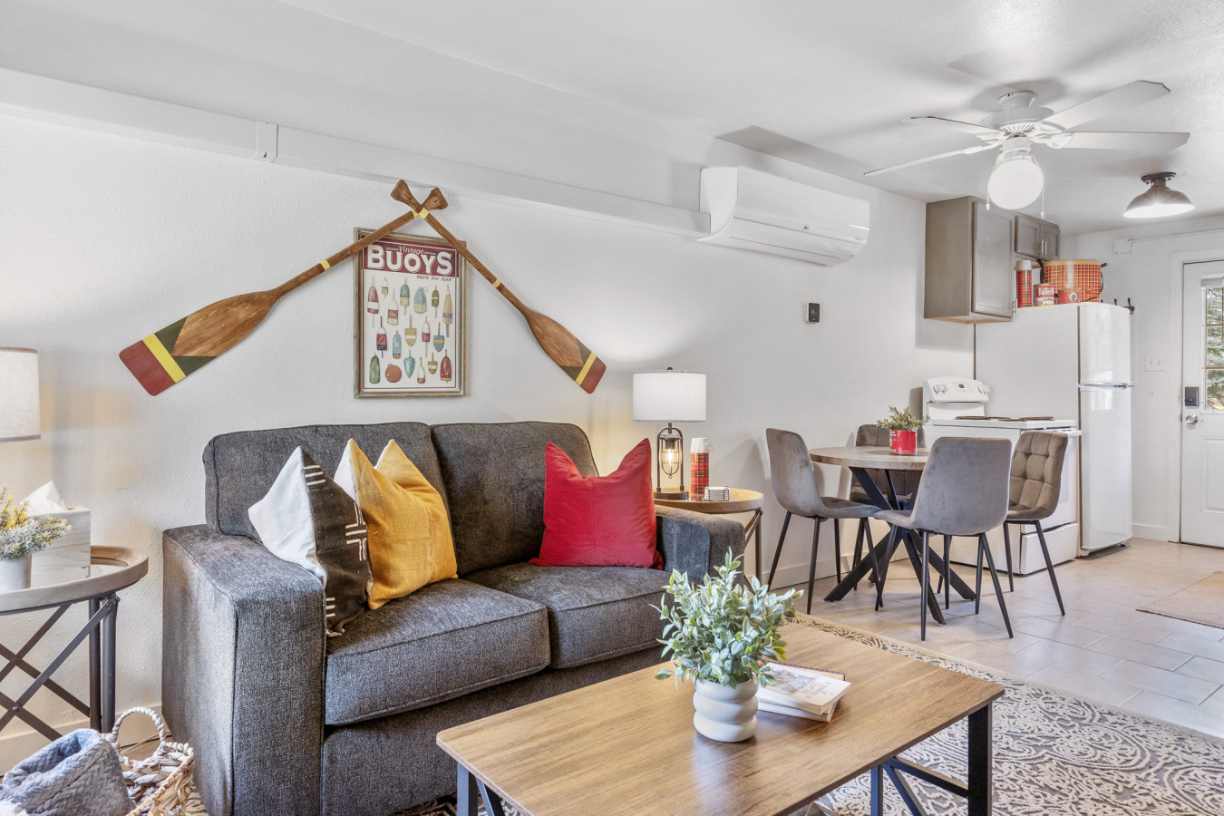 Current photos are from different unit, but the space will be decorated similarly and new photos will be posted soon!