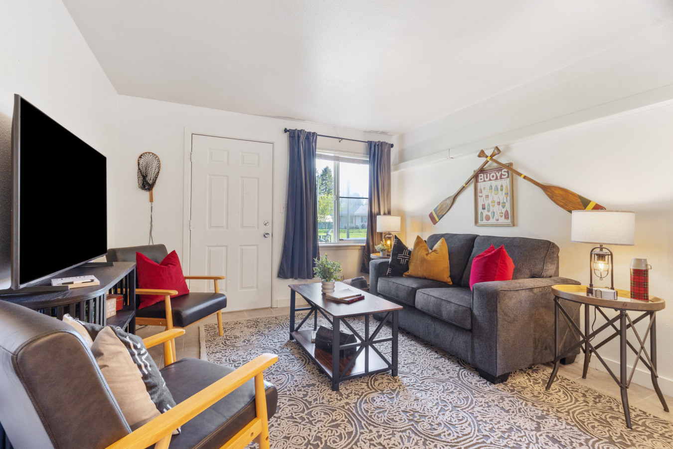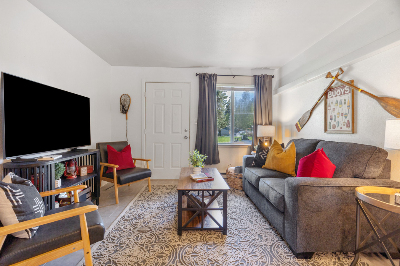 INDOOR LIVING: Smart TV, 1 living area, modern furnishings, newly remodeled