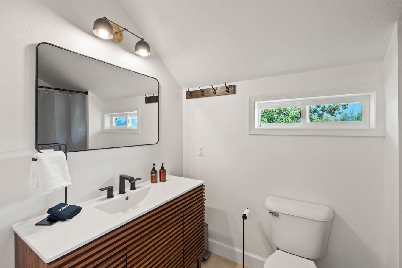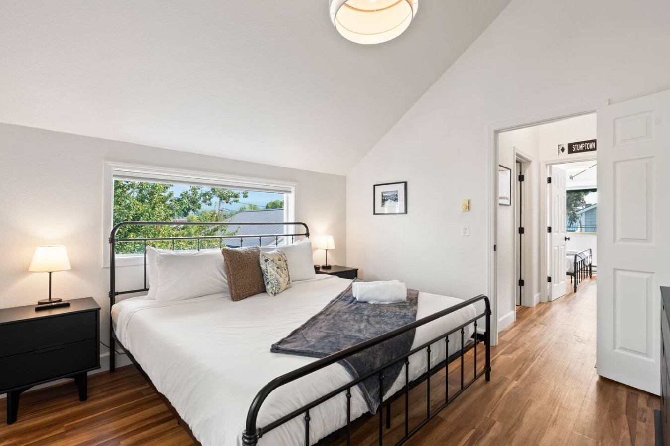 Upstairs, both bedrooms feature king beds and generous storage, with a full bath nearby. Need extra space? A twin rollaway bed is available upon request.