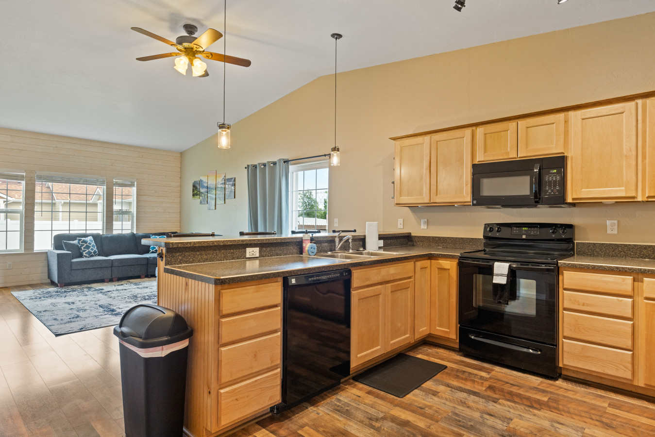 KITCHEN: Fully equipped, range stove, dishwasher, drip coffee maker, cookware, dishware & flatware, blender, crockpot