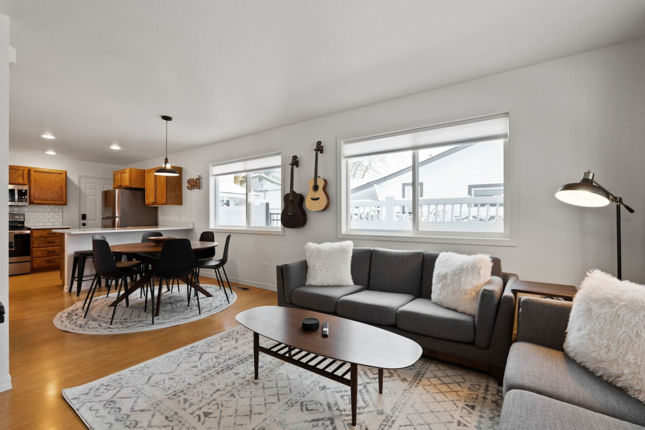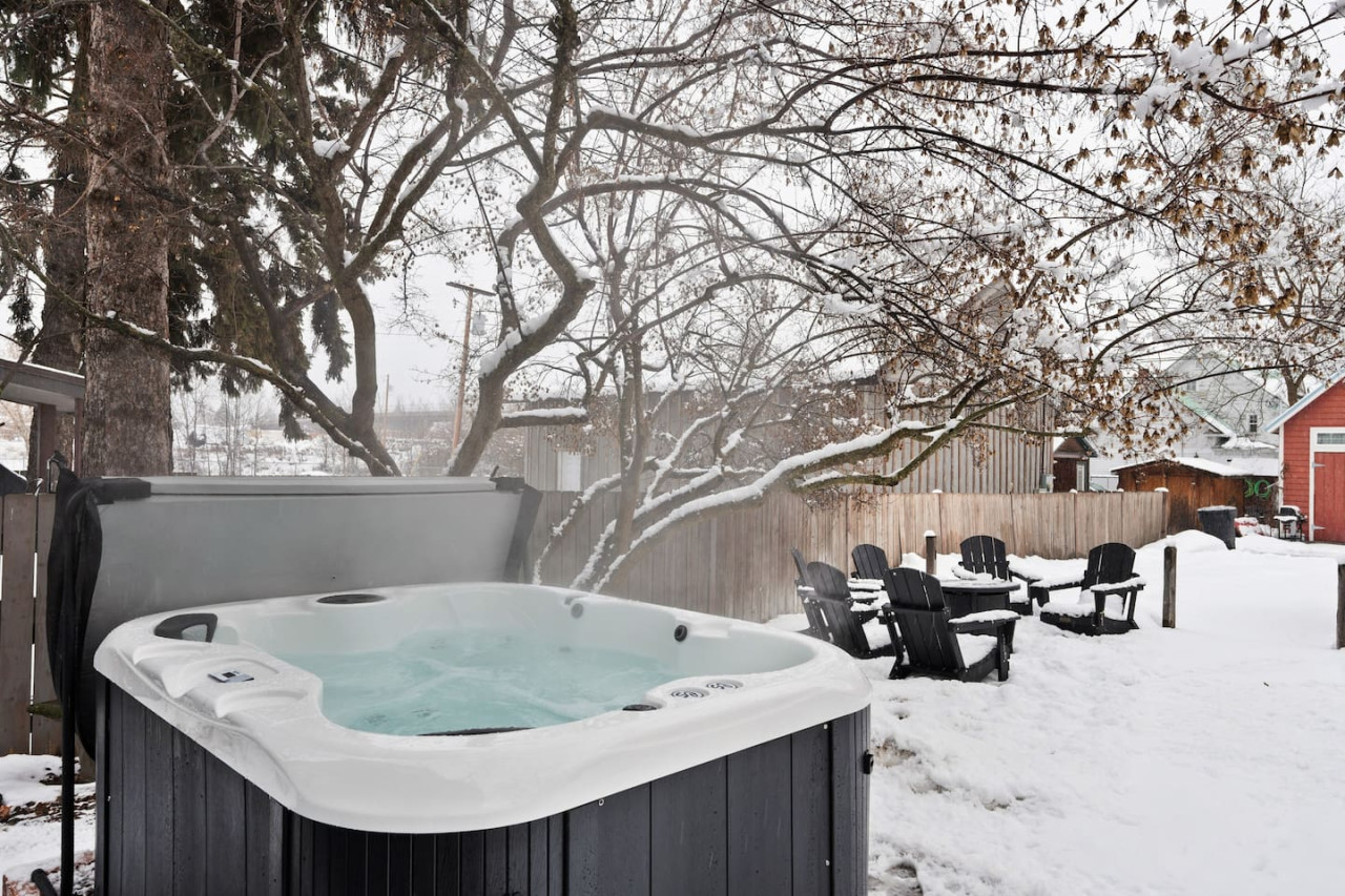 Experience the charm of Downtown Whitefish at the Railway Retreat. Unwind in a private hot tub under Montana’s starry skies, experience the vibrant nightlife of downtown Whitefish, or strum on provided guitars for creative relaxation. Enjoy easy access to Whitefish Mountain (6 mi), Whitefish Lake (1 mi), or Glacier Park (27 mi), ensuring endless adventure right outside your door. With its prime location and luxurious amenities, this space offers the perfect getaway for your Montana vacation.