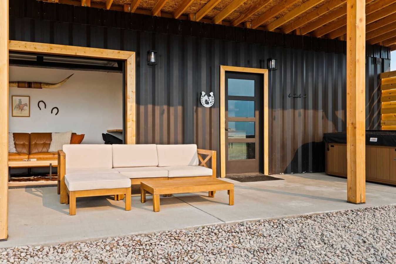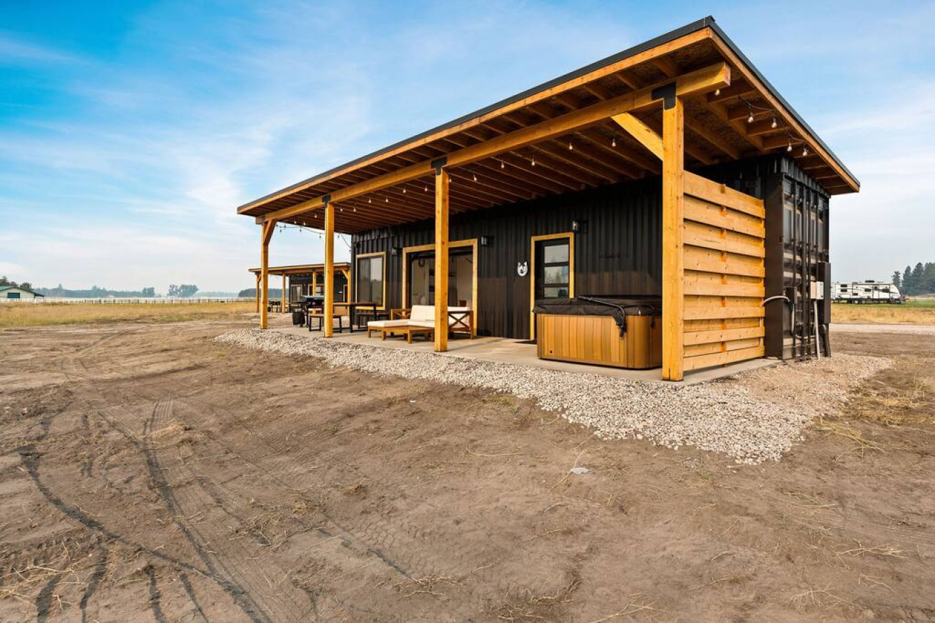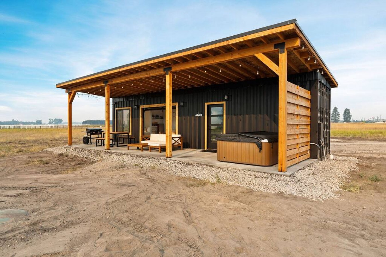 Escape to our unique and modern Columbia Falls, MT shipping container with a private hot tub, indoor/outdoor living, and stunning mountain views. Embrace the beauty of the outdoors while indulging in modern comforts at this captivating hideaway.