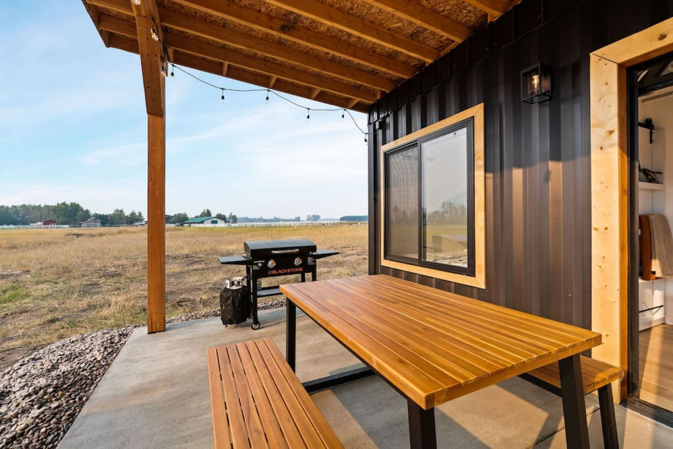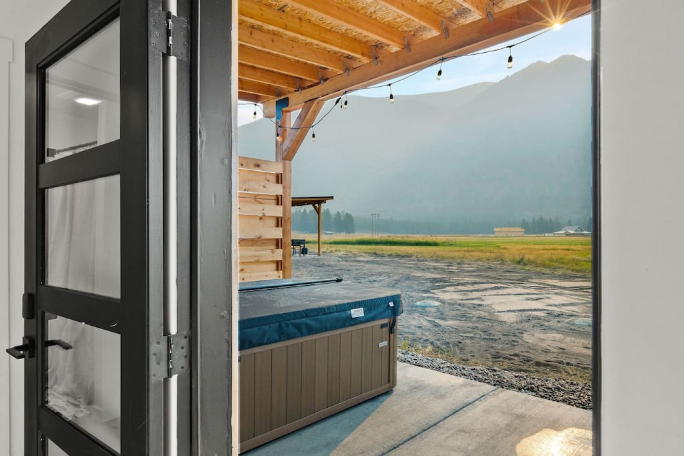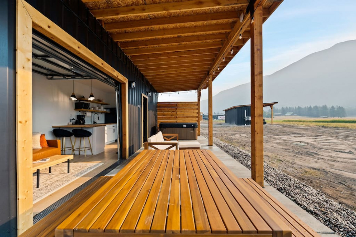 Escape to our unique and modern Columbia Falls, MT shipping container with a private hot tub, indoor/outdoor living, and stunning mountain views. Embrace the beauty of the outdoors while indulging in modern comforts at this captivating hideaway.