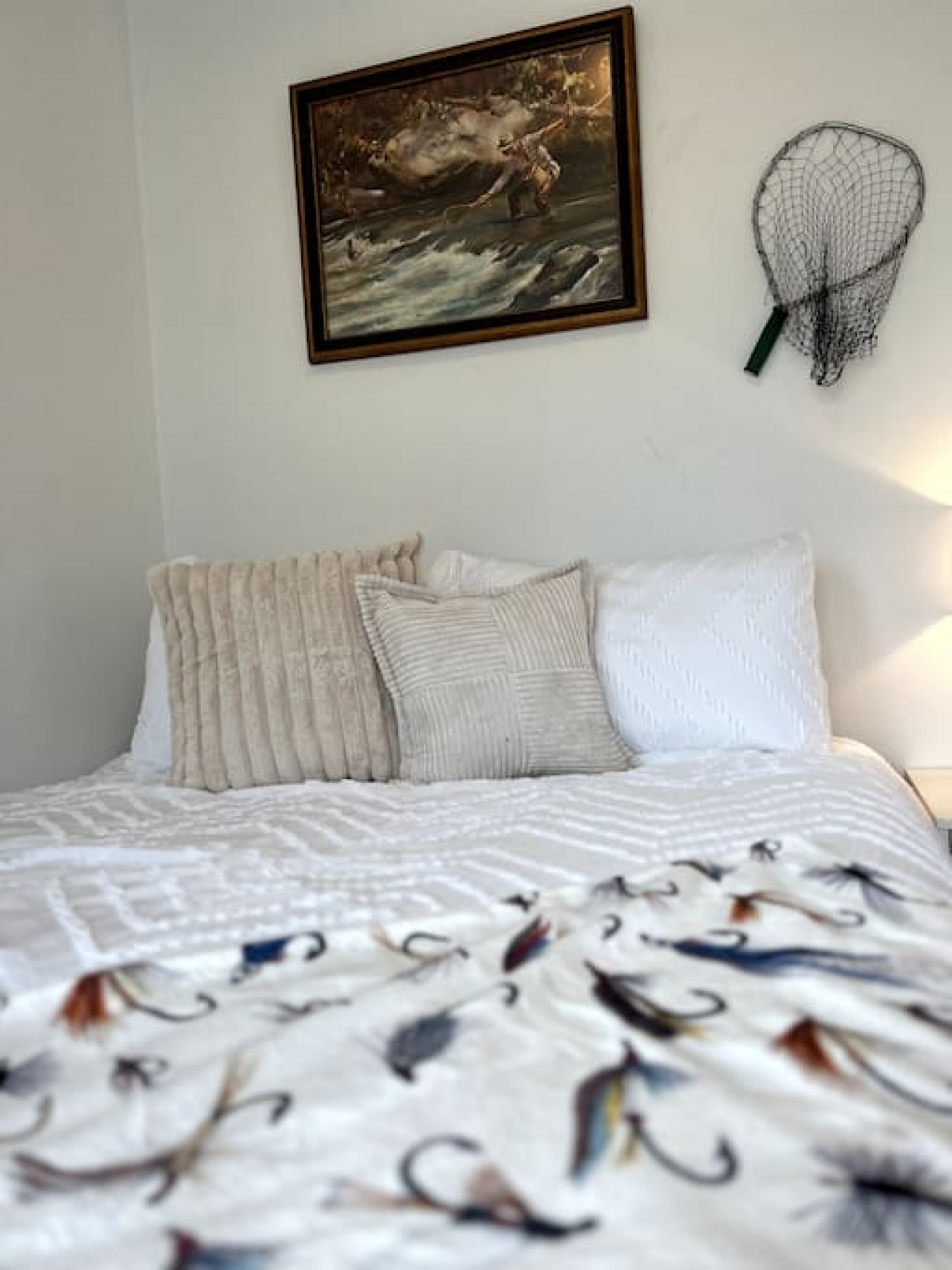 A warm and inviting living space welcomes you. This cabin is decorated with a tasteful Angler touch. All items have been hand picked to bring together the unique feel.